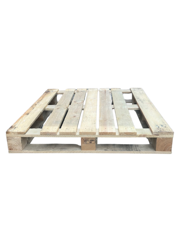 De pallet is vervaardigd uit stevig hout en kan lichte gebruikssporen of verkleuringen bevatten. Dit heeft echter geen invloed op de stabiliteit en functionaliteit: de pallet blijft betrouwbaar voor het stapelen en vervoeren van goederen.